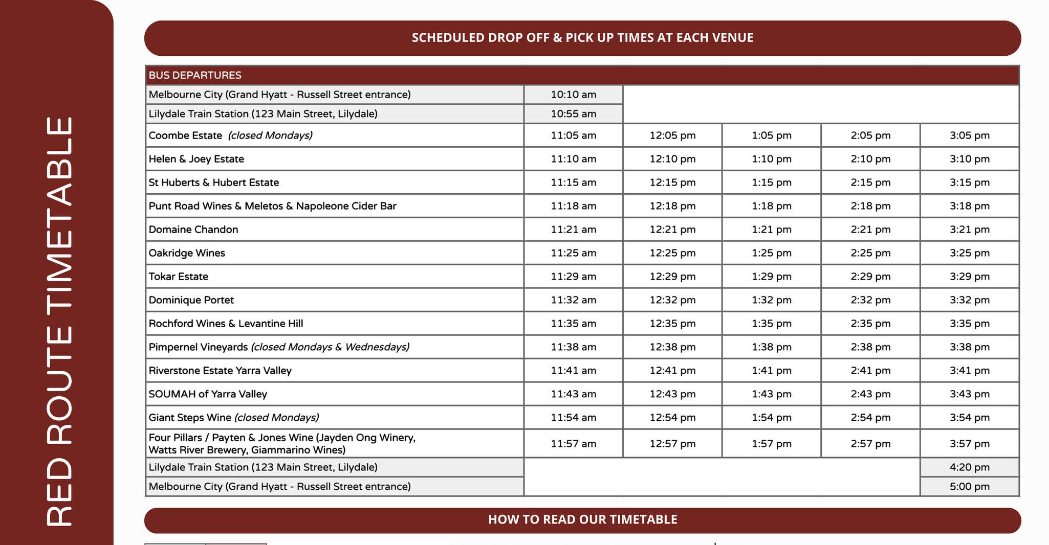 - βChoose from our RED or GREEN route - refer to timetable for stops