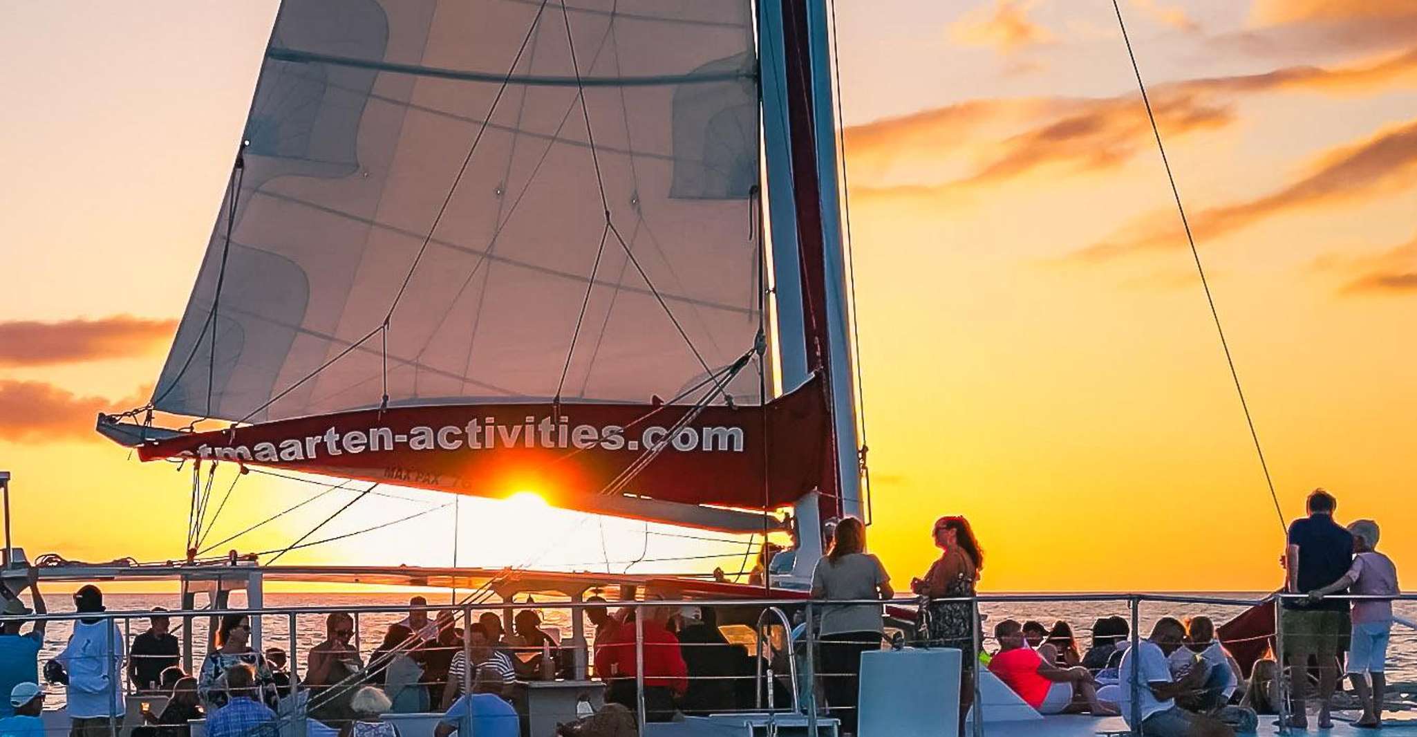Set sail on a spectacular evening cruise of Sint Maarten . This 1.5-hour tour departs from Simpson Bay and takes you on an enjoyable catamaran cruise around the coastline of the Caribbean island, where you will enjoy the sights and the beautiful sunset.