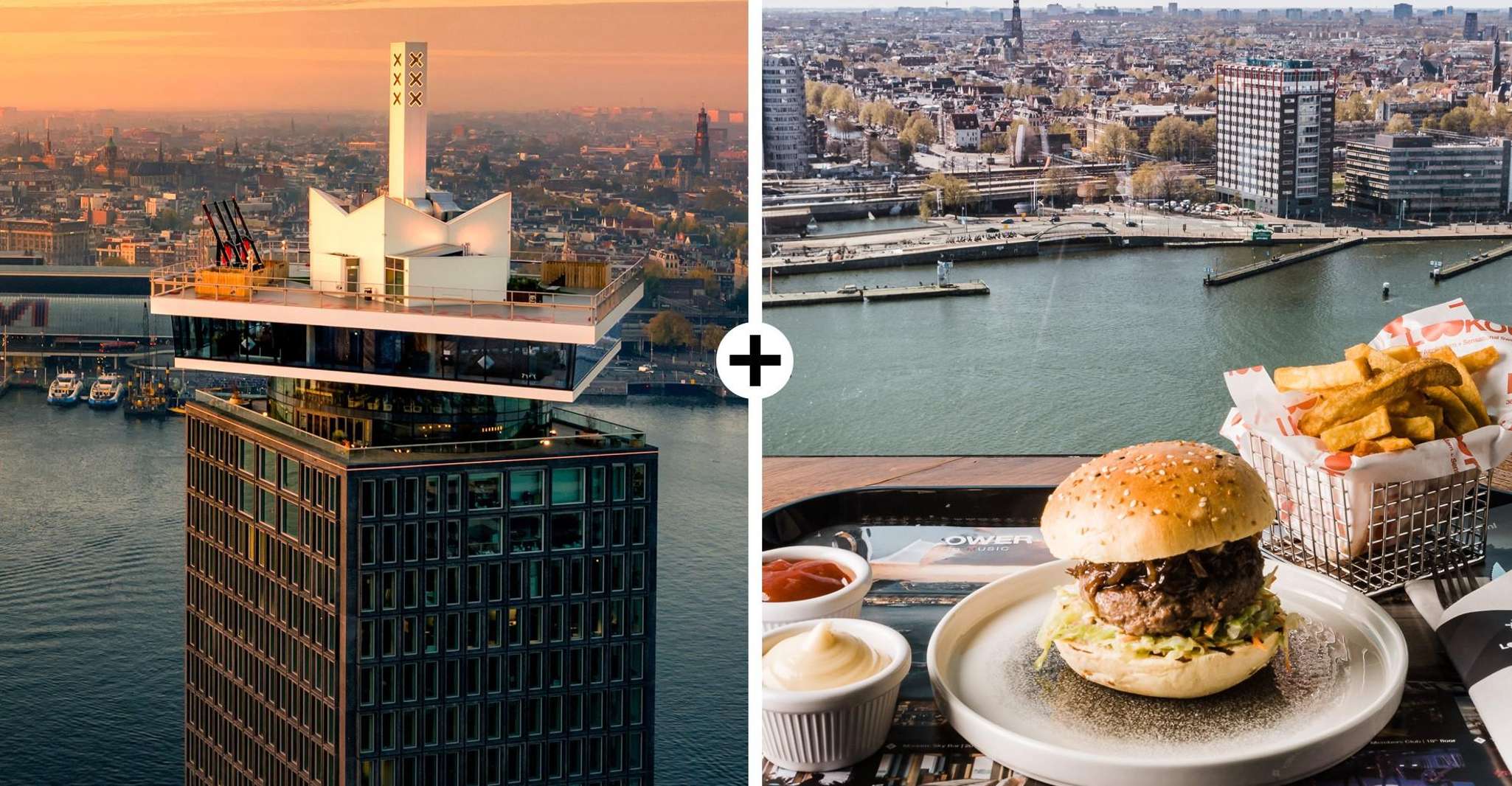 Get an entry ticket to A'DAM Lookout in Amsterdam and enjoy a tasty meal at the Panorama Restaurant with this combo deal. Marvel at panoramic views of the Dutch capital and enjoy a burger and fries.